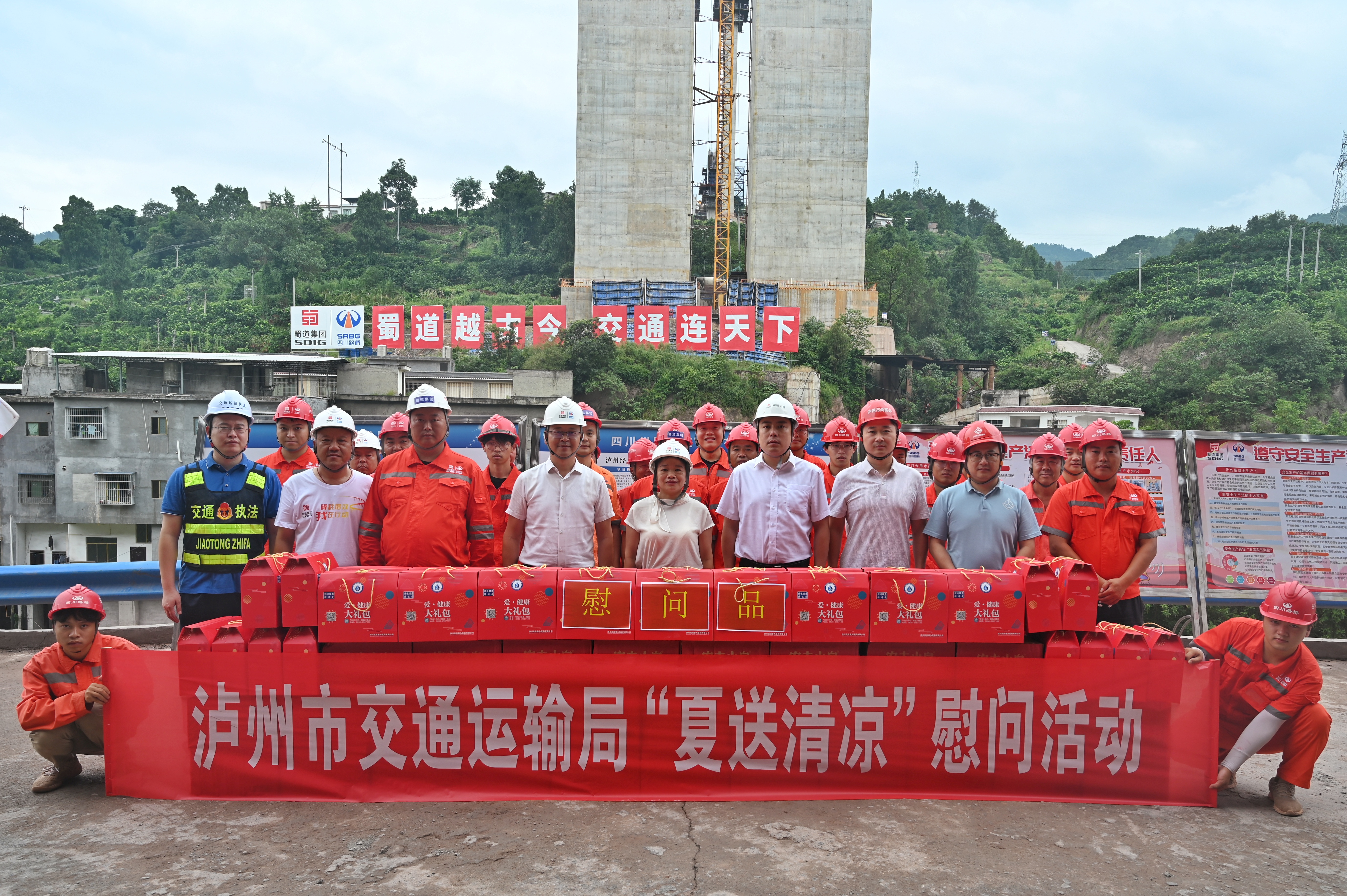 建項目古藺河特大橋施工現(xiàn)場,給一線工作人員帶去防暑降溫大禮包,并與技術(shù)人員進行了親切交流;慰問結(jié)束后,朱曉群一行赴月亮坡隧道和水落河特大橋現(xiàn)場進行檢查,對項目安全生產(chǎn)工作予以肯定,對高溫天氣依然堅守一線的員工表示感謝,也進一步強調(diào)相關(guān)工作部署:一是近期瀘州市,特別是古藺縣近日氣溫位居全國高溫榜首,項目部要做好員工的防暑降溫工作,以人為本,科學安排,合理調(diào)整工作時間,室外作業(yè)時應盡量避開酷熱時段;二是安全就是效益,要督促高空作業(yè)人員做好安全防護措施,嚴格落實瓦斯隧道超限預報工作;三是要密切關(guān)注天氣信息,熟悉高溫、汛期等應急處置措施,做好駐地風險及地災評估,確保駐地安全。
