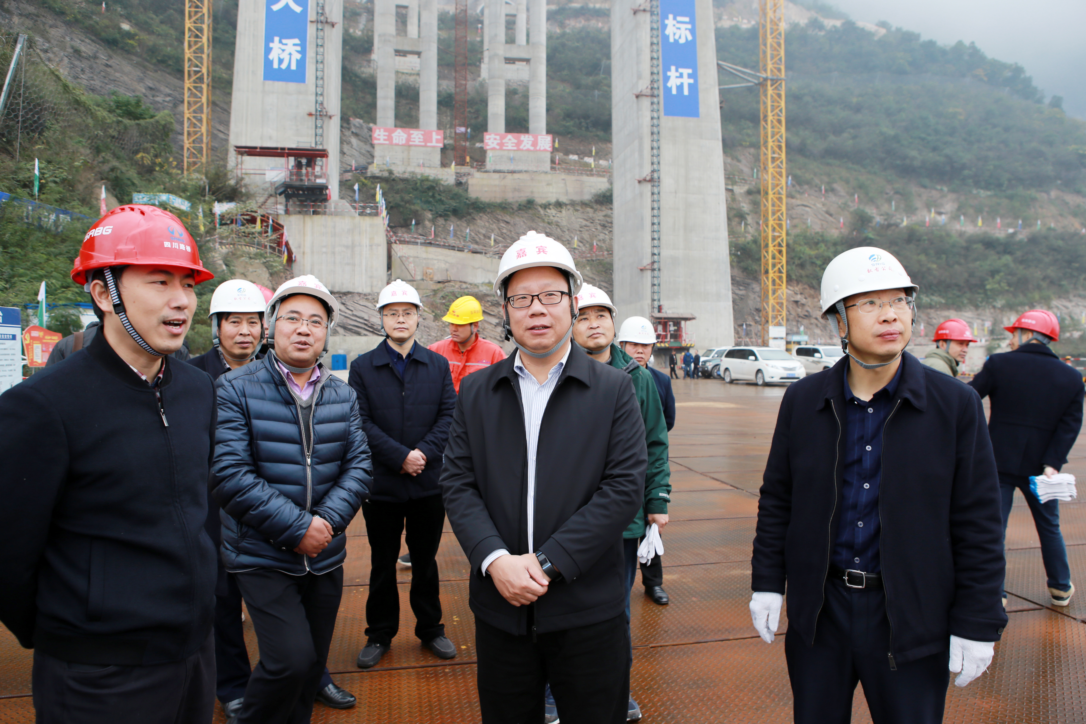 2018年11月28日,省鐵投集團總工程師李建興一行在公司總經理劉小波,紀委書記、工會主席李興明等領導班子成員陪同下對敘古高速公路赤水河大橋進行質量安全環保綜合檢查。