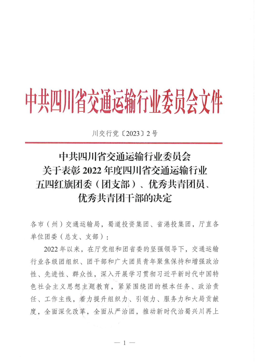 為表彰先進、樹立典型,近日,四川省交通運輸行業(yè)黨委發(fā)布了關(guān)于表彰2022年度四川省交通運輸行業(yè)五四紅旗團委(團支部)、優(yōu)秀共青團員、優(yōu)秀共青團干部的決定,敘古公司團委書記、黨務(wù)工作部(人力資源部)副部長李青榮獲優(yōu)秀共青團干部榮譽稱號。