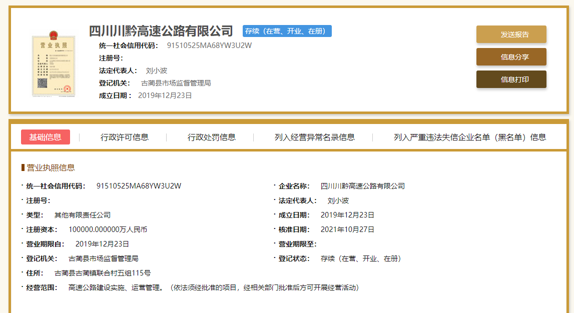 公司地址:古藺西區敘古高速收費站高速公路管理中心