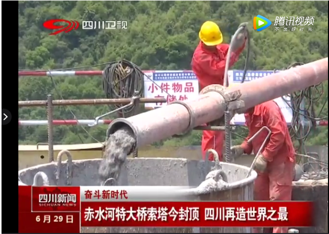 SCTV-1四川新聞報道赤水河大橋(四川岸)索塔封頂
