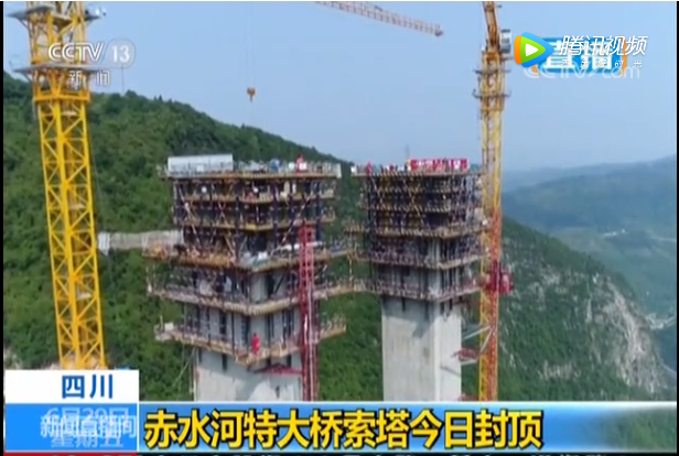 CCTV-13新聞直播間報道赤水河大橋(四川岸)索塔封頂