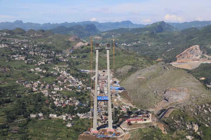 鳳凰網報道赤水河大橋(四川岸)索塔封頂