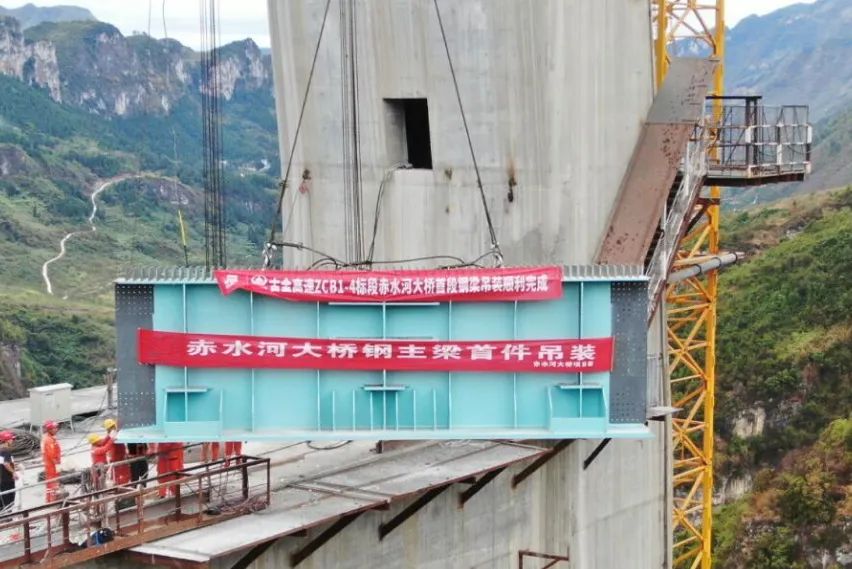 再續(xù)精彩,古金高速赤水河特大橋首段組合梁成功吊裝